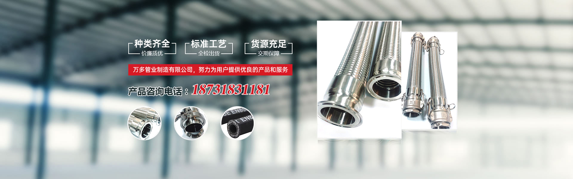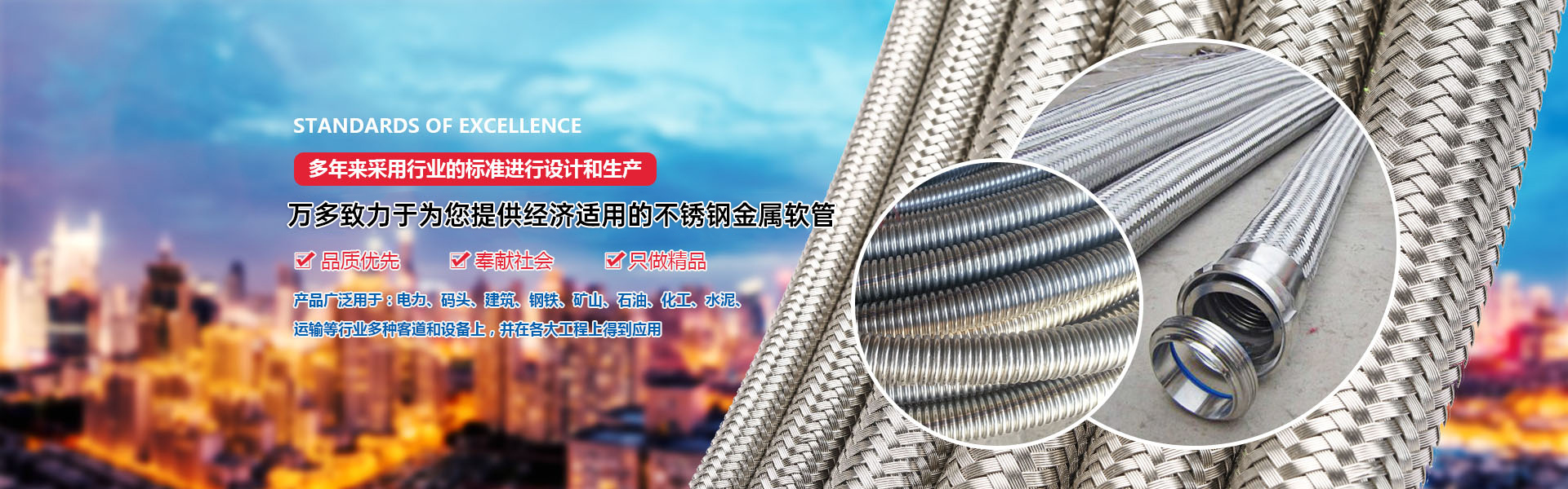 衡水萬多管業制造有限公司是一家生產不銹鋼金屬軟管、波紋金屬軟管,不銹鋼波紋補償器、高壓膠管、高壓鋼絲編織膠管、夾布膠管、大口徑膠管、橡膠密封件等產品的民營企業。